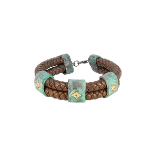 ARTIFACT BROWN LEATHER BRACELET WITH TEAL PATINA
