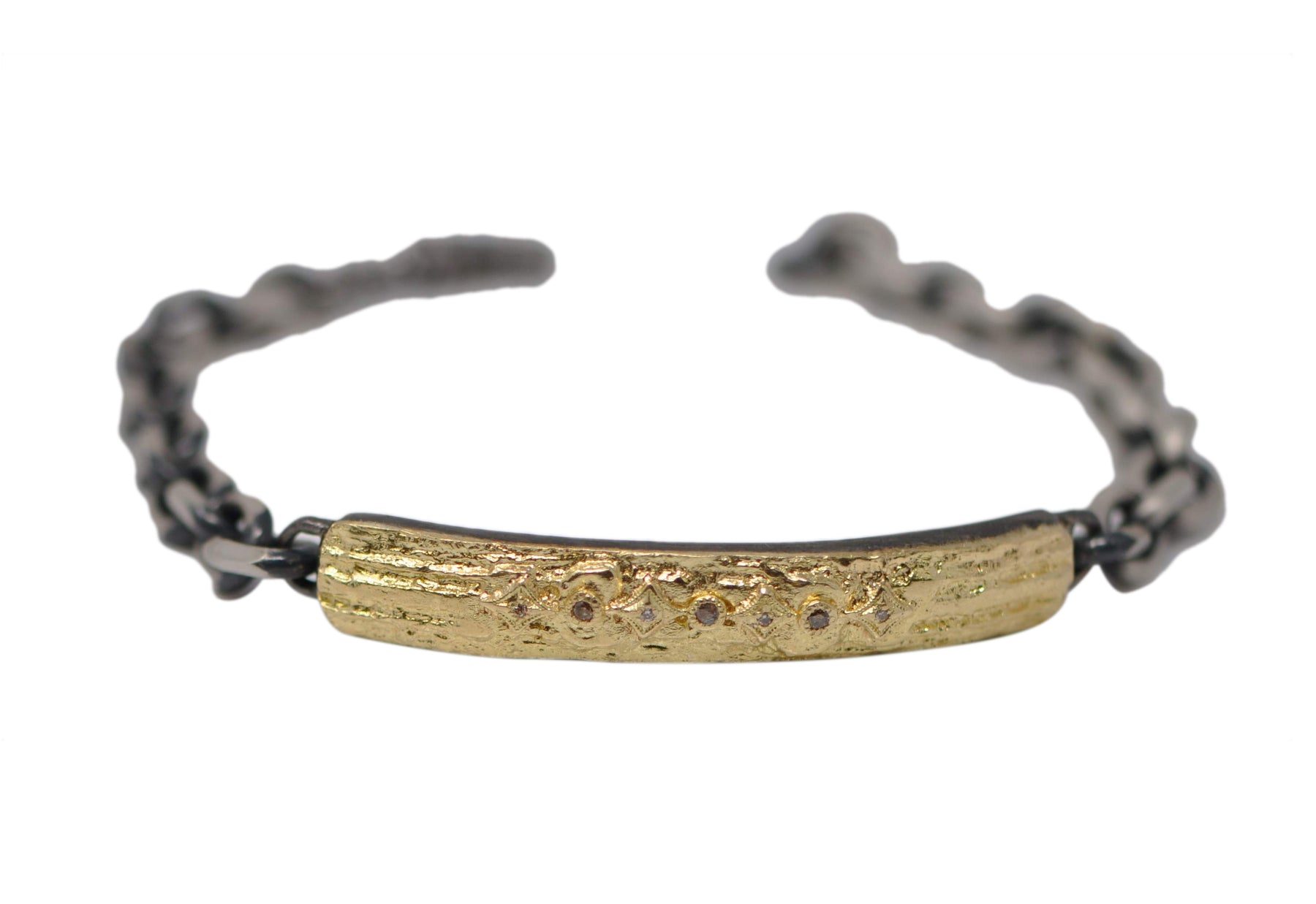 18k Yellow Gold and Blackened Sterling Silver 8.5" artifact ID bracelet with crivellis and champagne diamonds.
