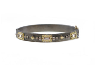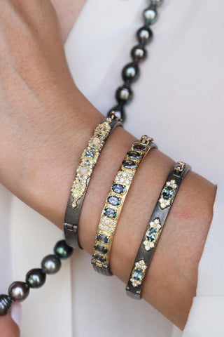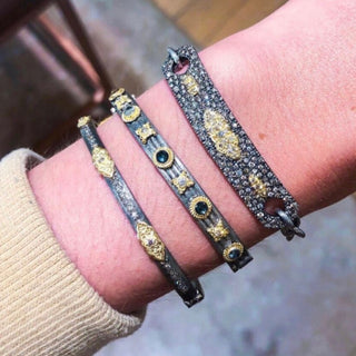 Mix metals, textures, colored stones & enamel, different shapes, and sizes to create the ultimate Armenta stack of rings or bracelets.