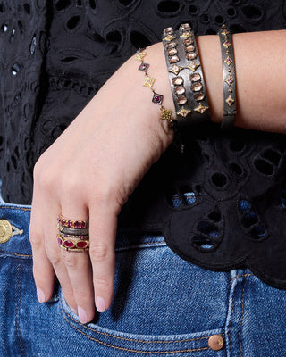 Mix metals, textures, colored stones & enamel, different shapes, and sizes to create the ultimate Armenta stack of rings or bracelets.