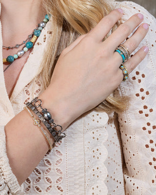 To create your unique stack, mix metals, textures, colored stones & enamel, different shapes, and sizes to create the ultimate Armenta Wrist stack to elevate your everyday style.