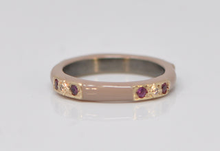 LIGHT NUDE ENAMEL STACK BAND WITH CHAMPAGNE DIAMONDS AND PURPLE GARNETS