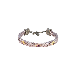 METALLIC PINK LEATHER BRACELET WITH PURPLE GARNET AND CRIVELLI DETAILS