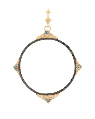 18kt Yellow Gold & Blackened Silver London Blue Topaz Open Circle Drop Earrings