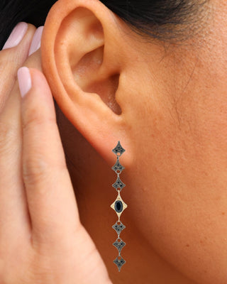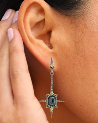 18kt Yellow Gold Star Drop Earrings with Grey Diamonds