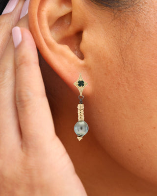 18kt Yellow Gold & Blackened Silver Earrings with Pearl and Tourmaline