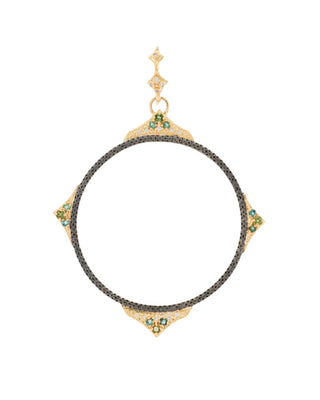 18kt Yellow Gold & Blackened Silver Open Circle Tourmaline Earrings