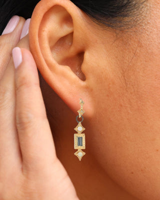 Sapphire Diamond and Tourmaline Disc Drop Huggie Hoop