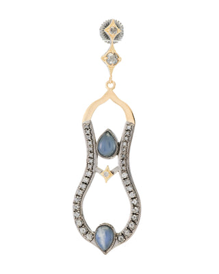 SCROLL DIAMONDS,IOLITE AND ANDALUSITE DROP EARRING