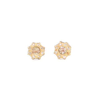 18k Yellow Gold and Blackened Sterling Silver mini stud earring with pointed halo featuring white diamonds and diaspore center.