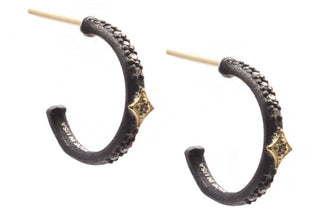 Huggie Hoops Armenta Small Hoop Earrings that can use Armenta's Interchangeable Charms to Mix and Match and Create Different Earrings. Wear them by themselves or wear them with Cuento Charms.