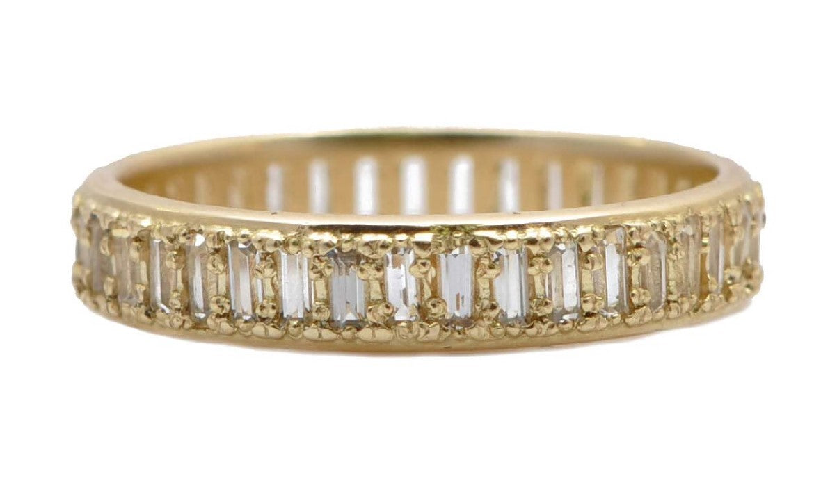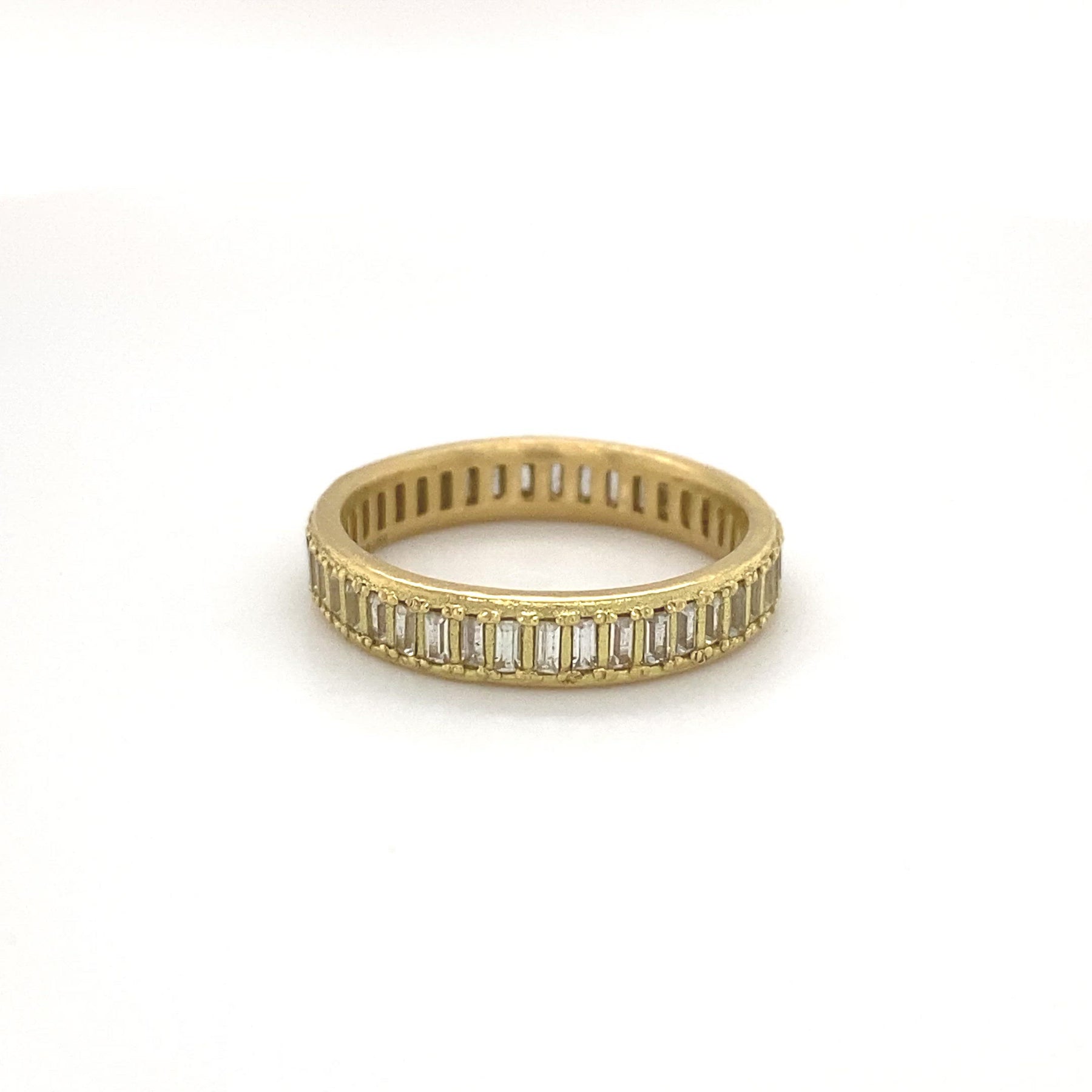 18K Yellow Gold Channel Set White Sapphire Baguette Stack Band Ring