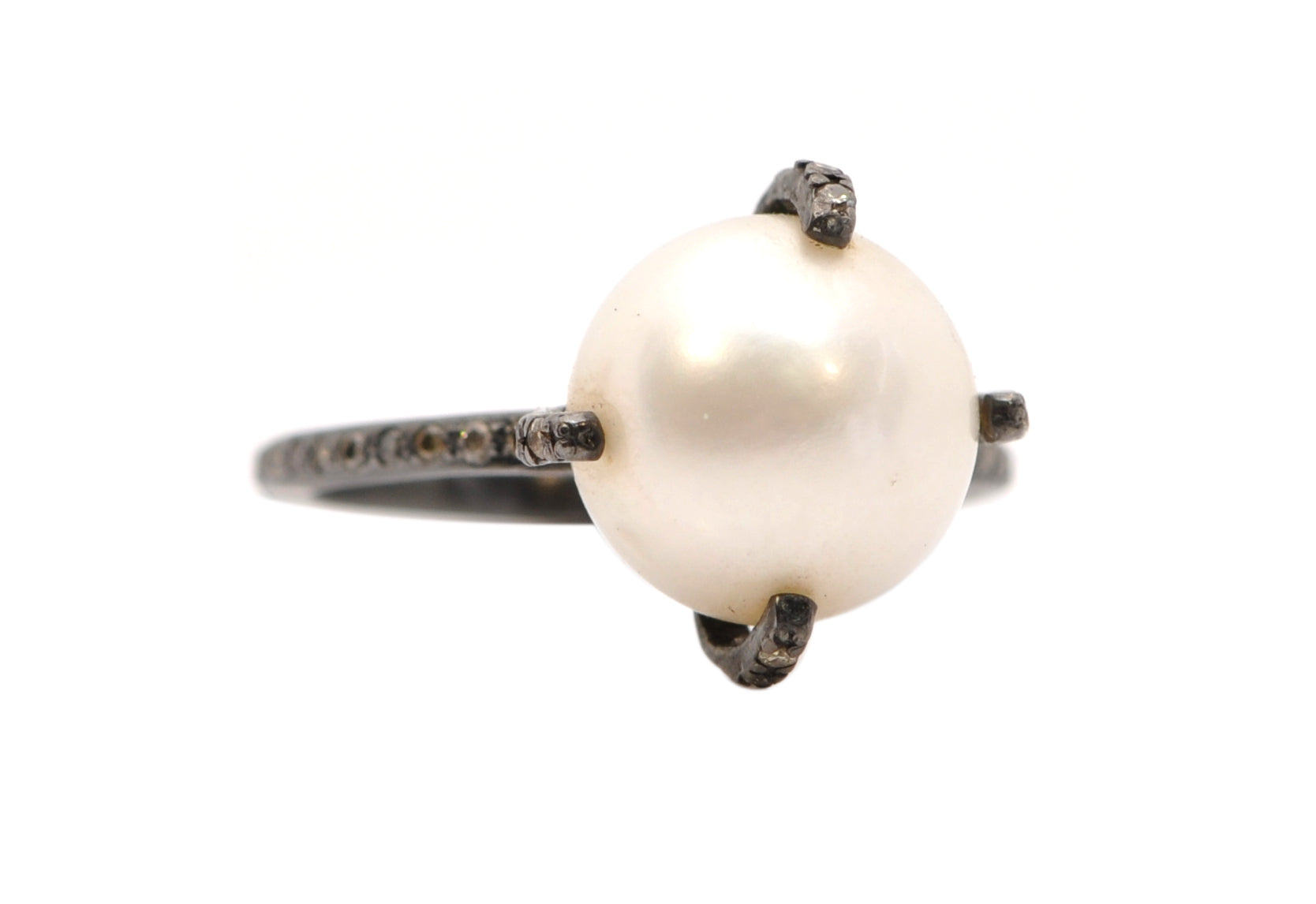 DIAMOND PAVE MIDNIGHT PEARL RING