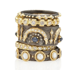 18K Yellow Gold Cross Band Stack Ring with White Sapphires.