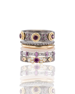 Stack rings - Armenta Ring stacking is an art form. Stacking and layering to achieve that lived-in-luxe look. Best known for our mixed metal jewelry and #StackingRings. All of our stack rings are designed to be cradled together or paired with a Statement Stack ring with a raised gemstone basket mounting. To create your unique stack, mix metals, textures, colored stones & enamel, different shapes, and sizes to create the ultimate Armenta stack of rings to elevate your everyday style.