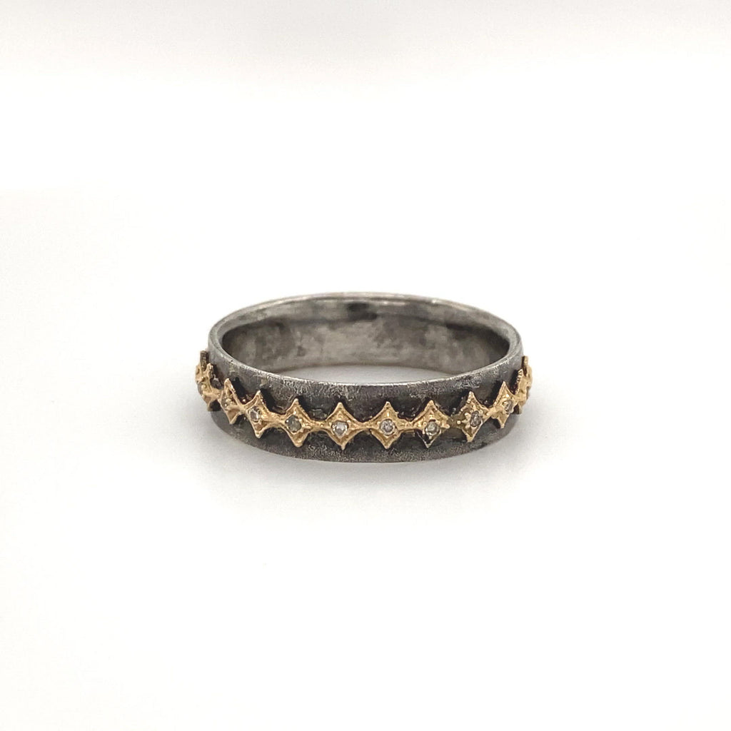 14K Rose Gold and Blackened Sterling Silver Crivelli Wide Band with Champagne Diamonds. (0.14 TCW)
