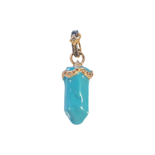 Enhancer 14k Rose Gold, Grey Sterling Silver and Turquoise enamel with 0.158 CT Champagne Diamonds.