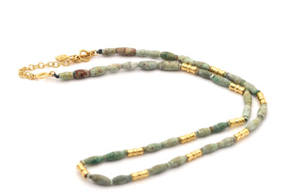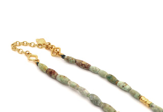 18k Yellow Gold 18" necklace with ancient turquoise Afghani beads and organic pebble beads with toggle closure. Adjustable at 16" and 18".