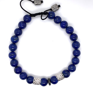 LAPIS BEADS AND GREY SILVER AND BOX "A" PULL BRACELET